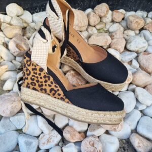 Sandali in cavas con doppio laccio alla schiava e zeppa in corda e tessuto stampa...