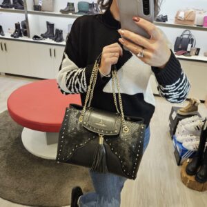 L’ATELIER DU SAC – Shopper con borchie, stampa cocco e pelo cavallino nero