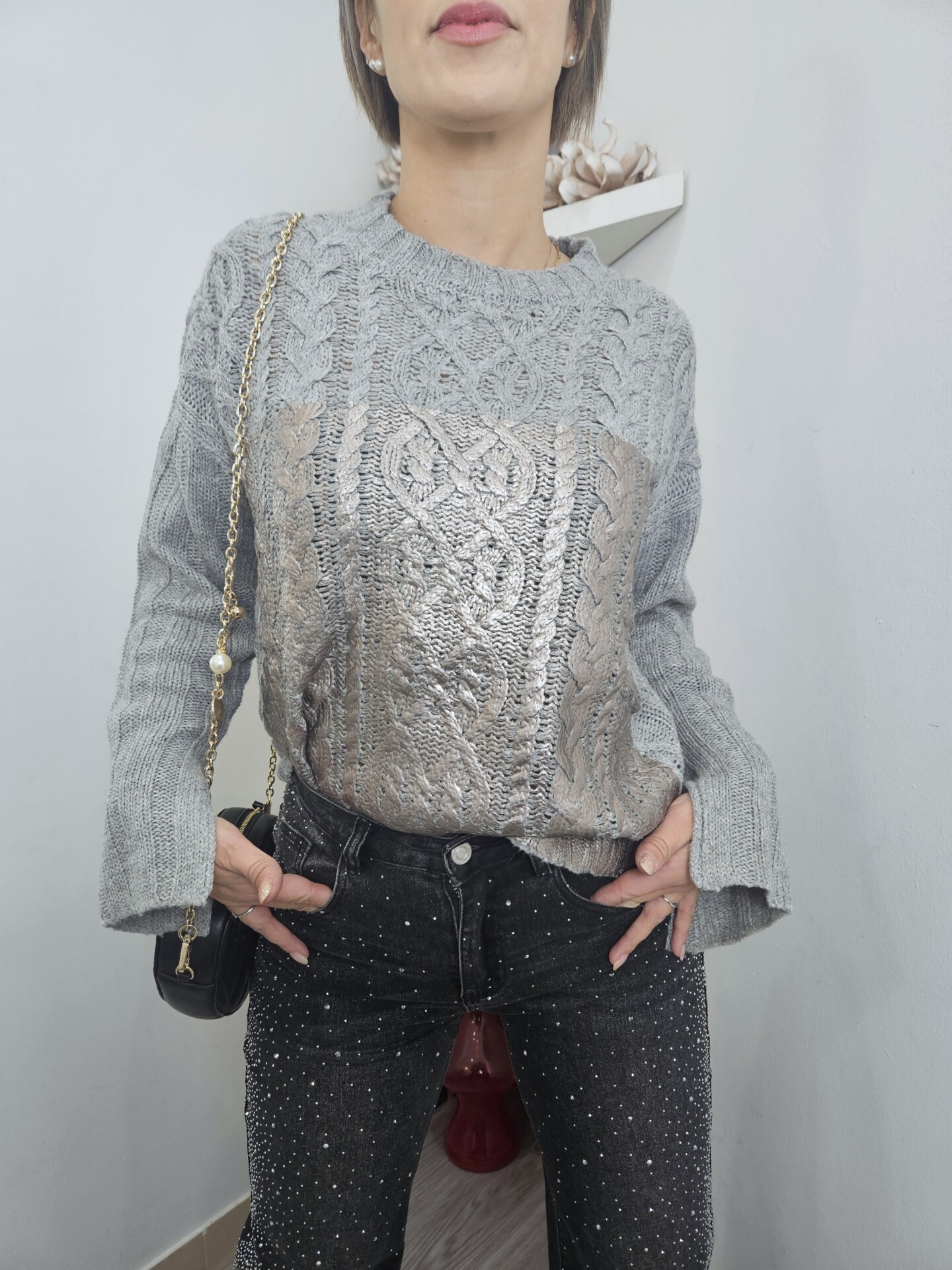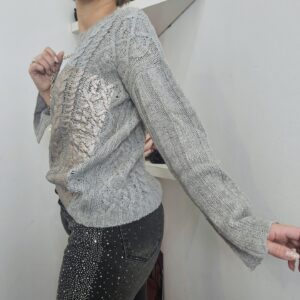 Il Maglione PSYLLOS Over unisce volume e stile con una vestibilità oversize, maniche lunghe ampie e una raffinata lavorazione a trecce. Il tocco speciale? La spalmatura gold, che dona un finish luminoso e ricercato. Perfetto per look casual con un twist brillante.