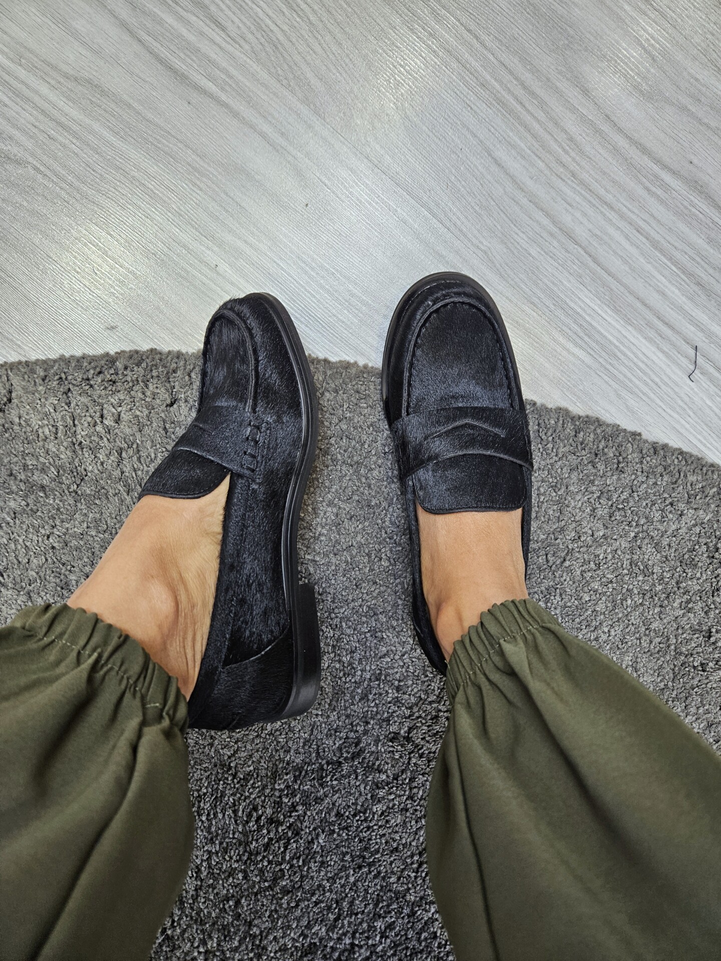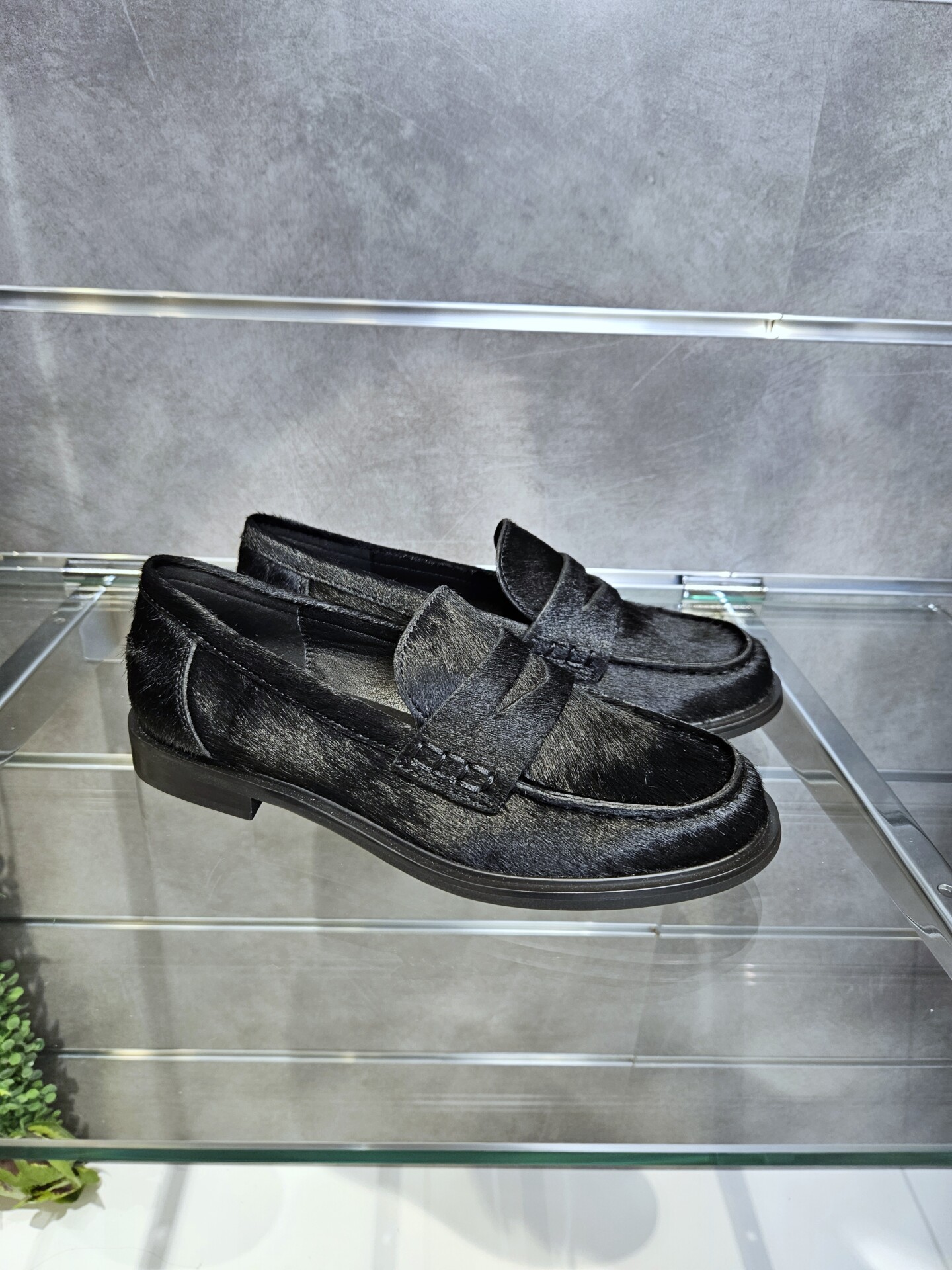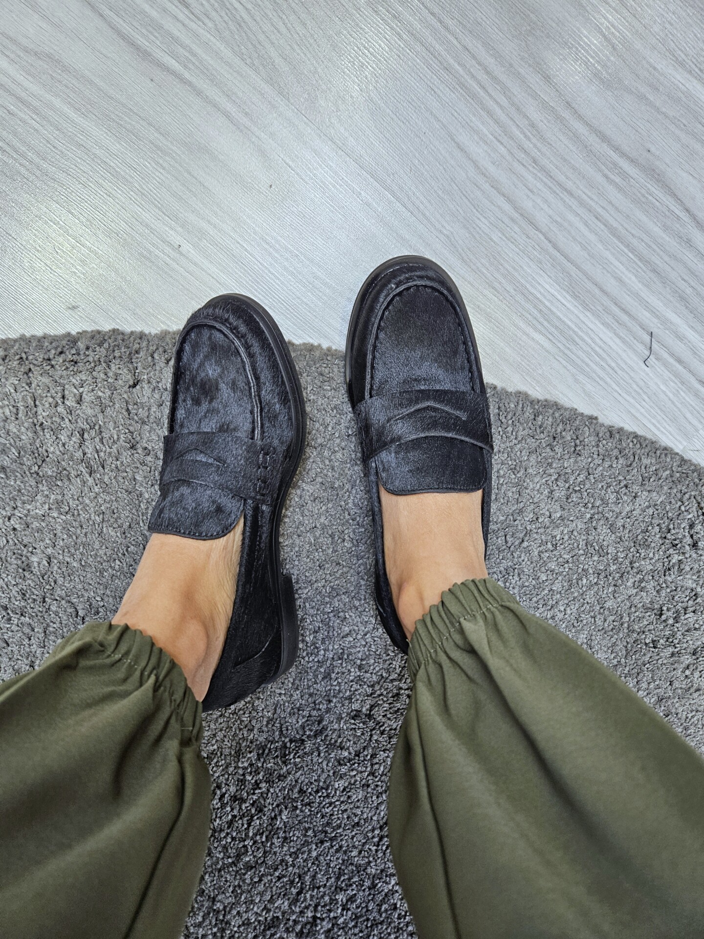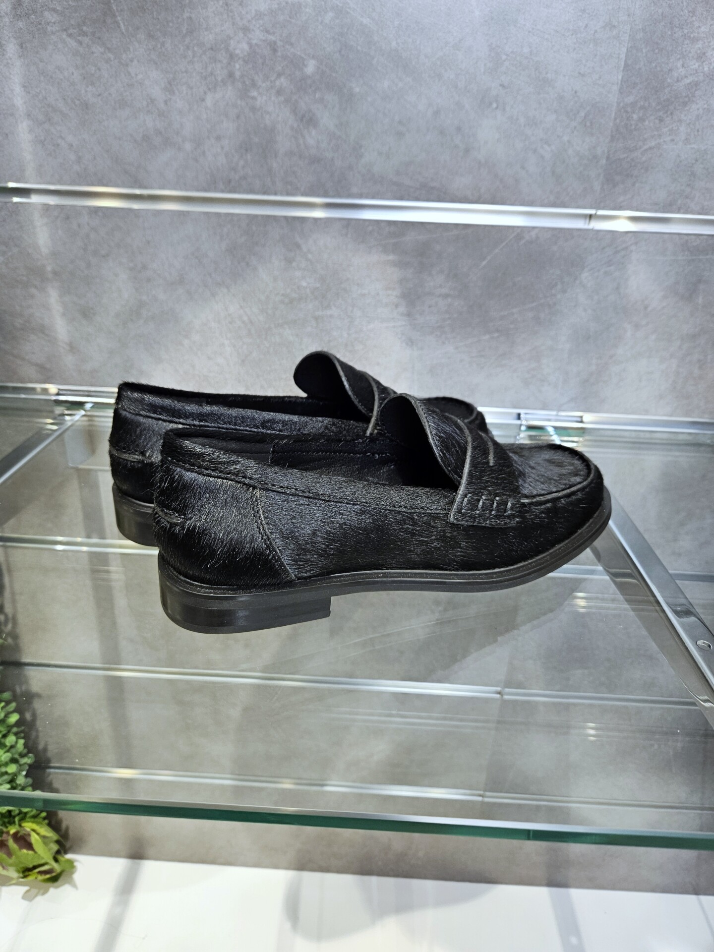Mocassini da donna in pelle effetto cavallino nero e passante sul collo piede. sottopiede in pelle tacco basso da 2 cm. grinta e stile per ogni look.