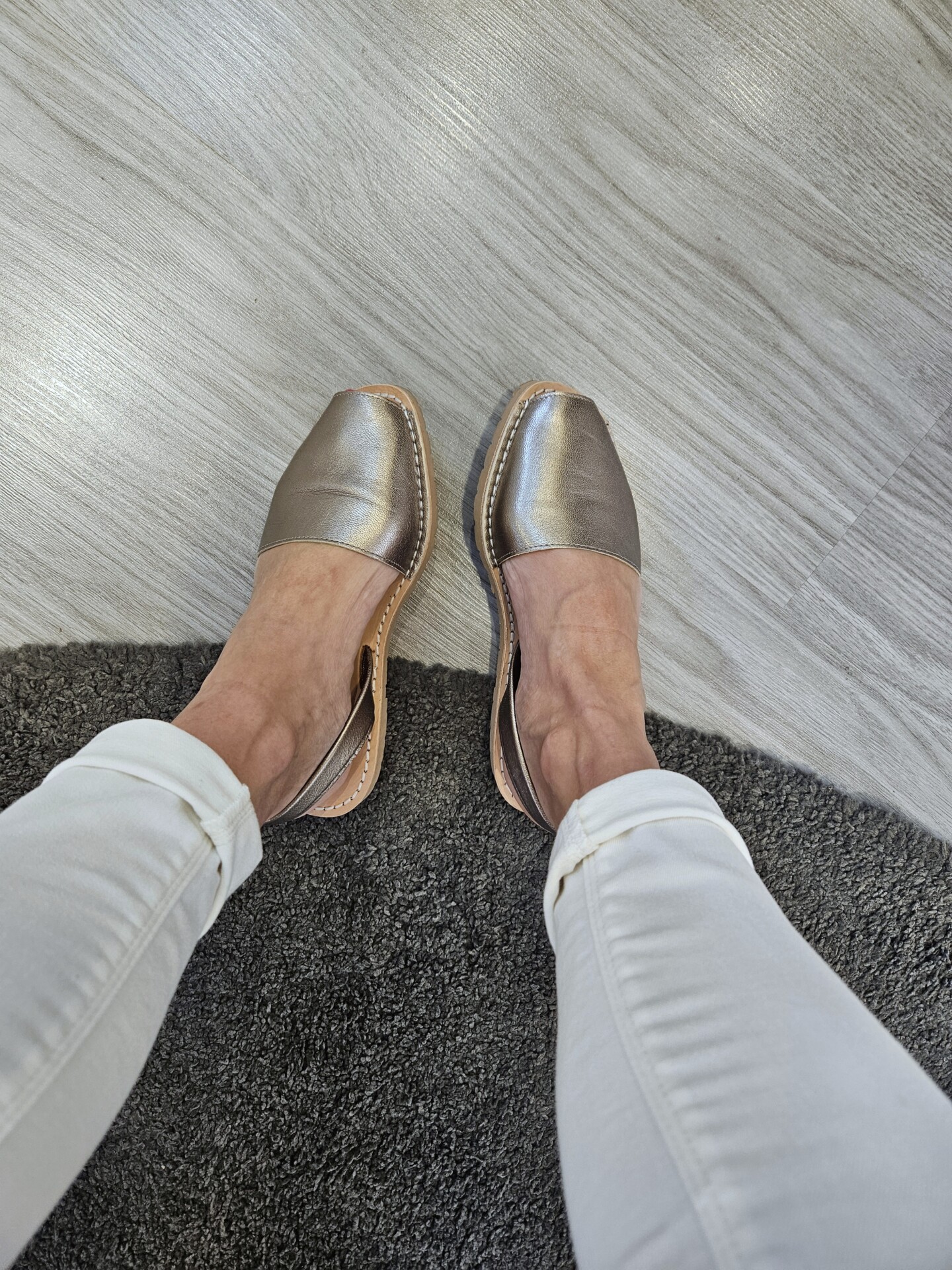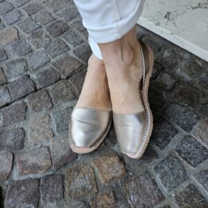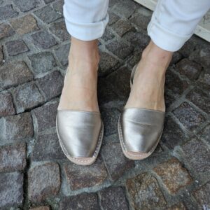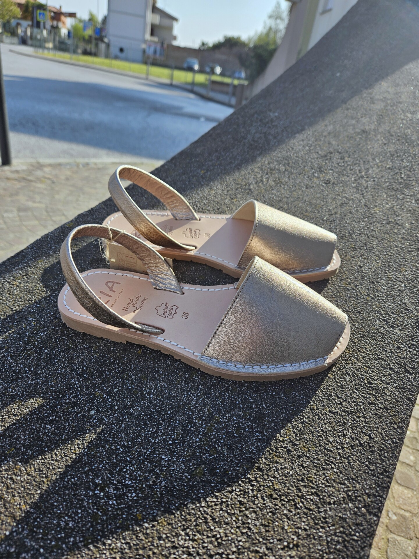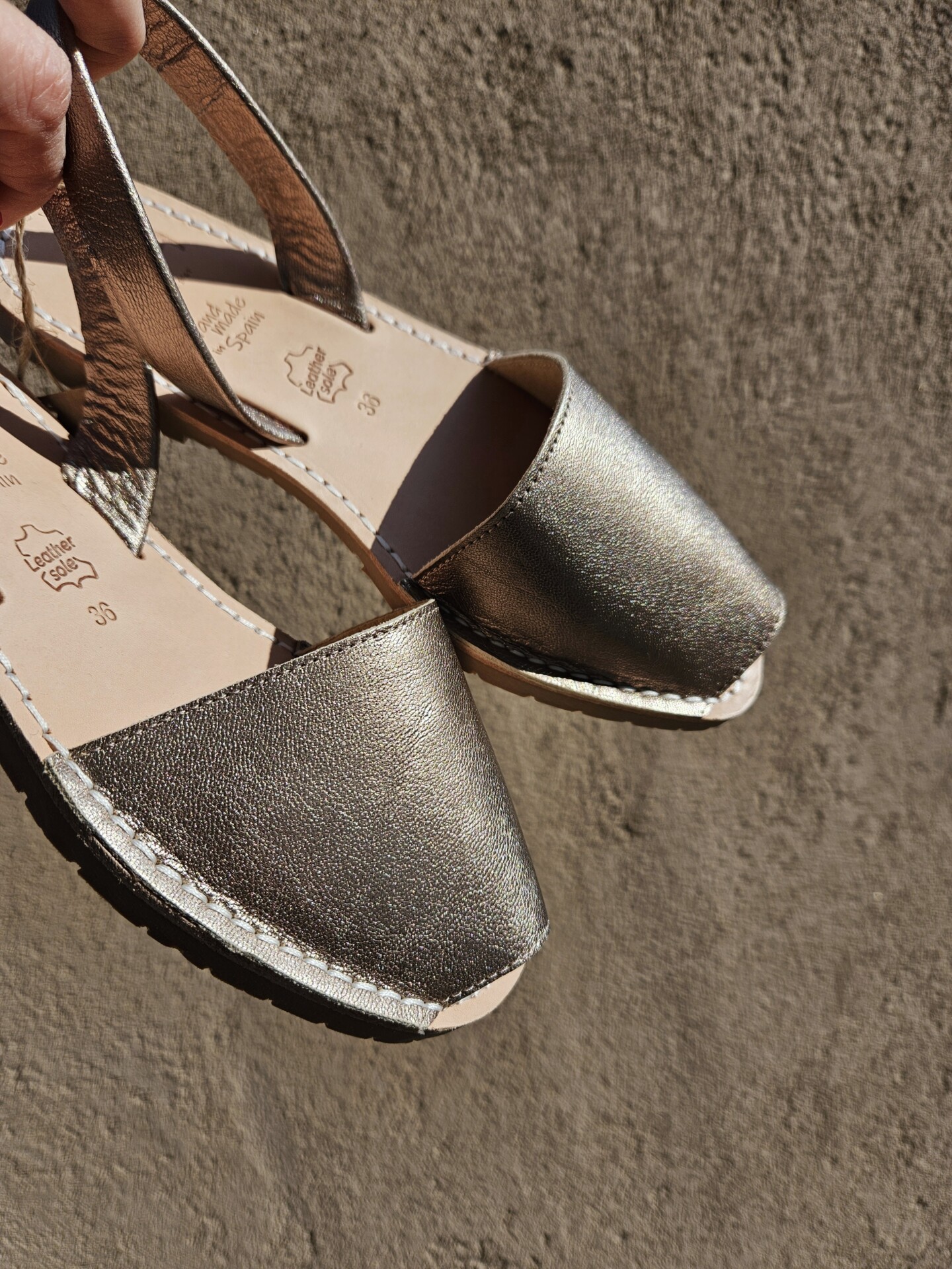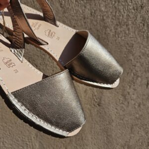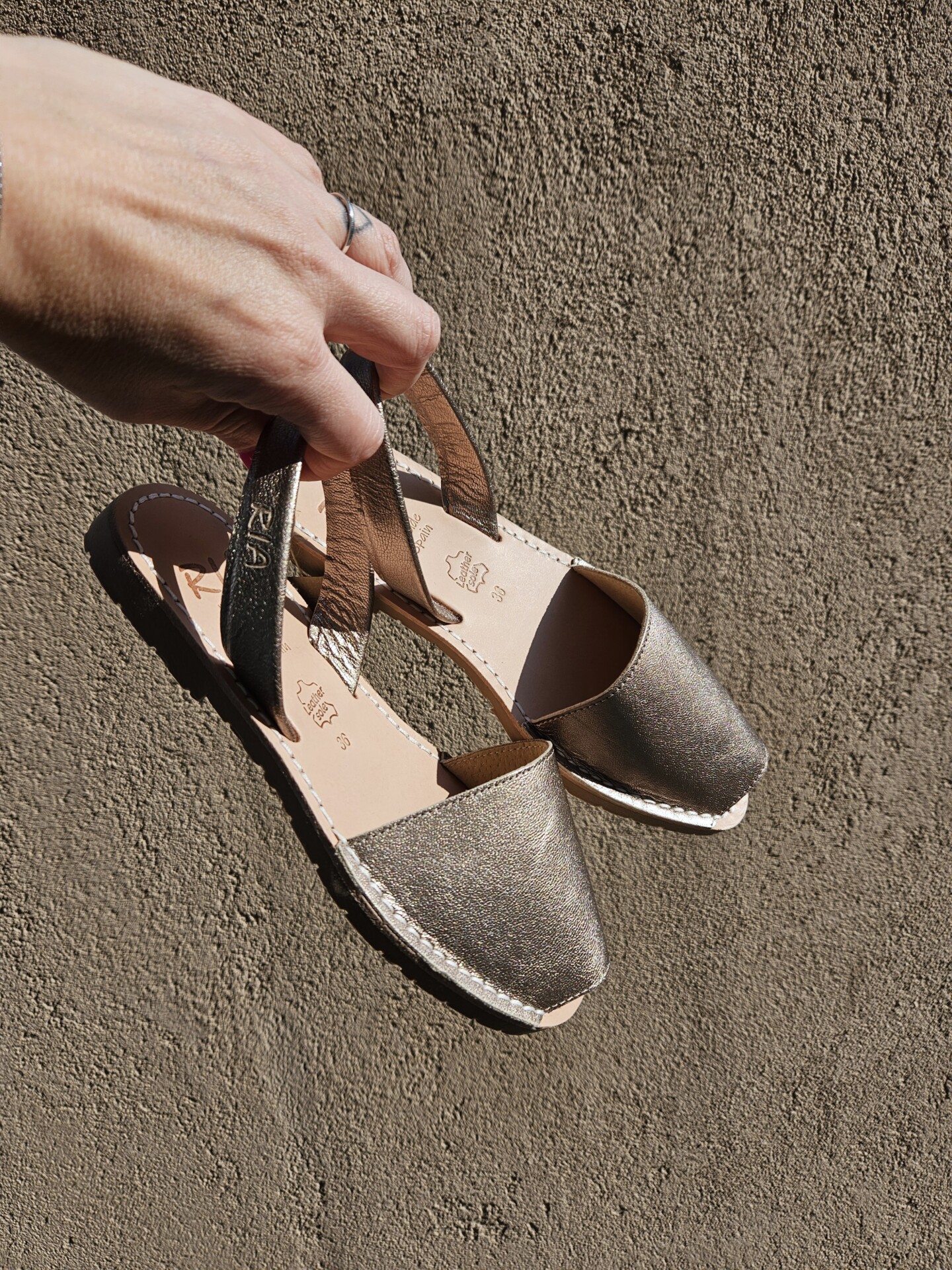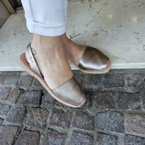 Minorchine originali in pelle metallizzata color bronzo che dona un tocco unico a qualsiasi look. La suola in gomma color caramello che imita gli pneumatici dei primi modelli originali dei sandali e la soletta in cuoio 100% naturale rendono queste minorchine di qualità unica. Tutte le nostre minorchine hanno il sigillo di garanzia “Avarca de Menorca” che certifica la qualità del prodotto e la sua provenienza geografica.