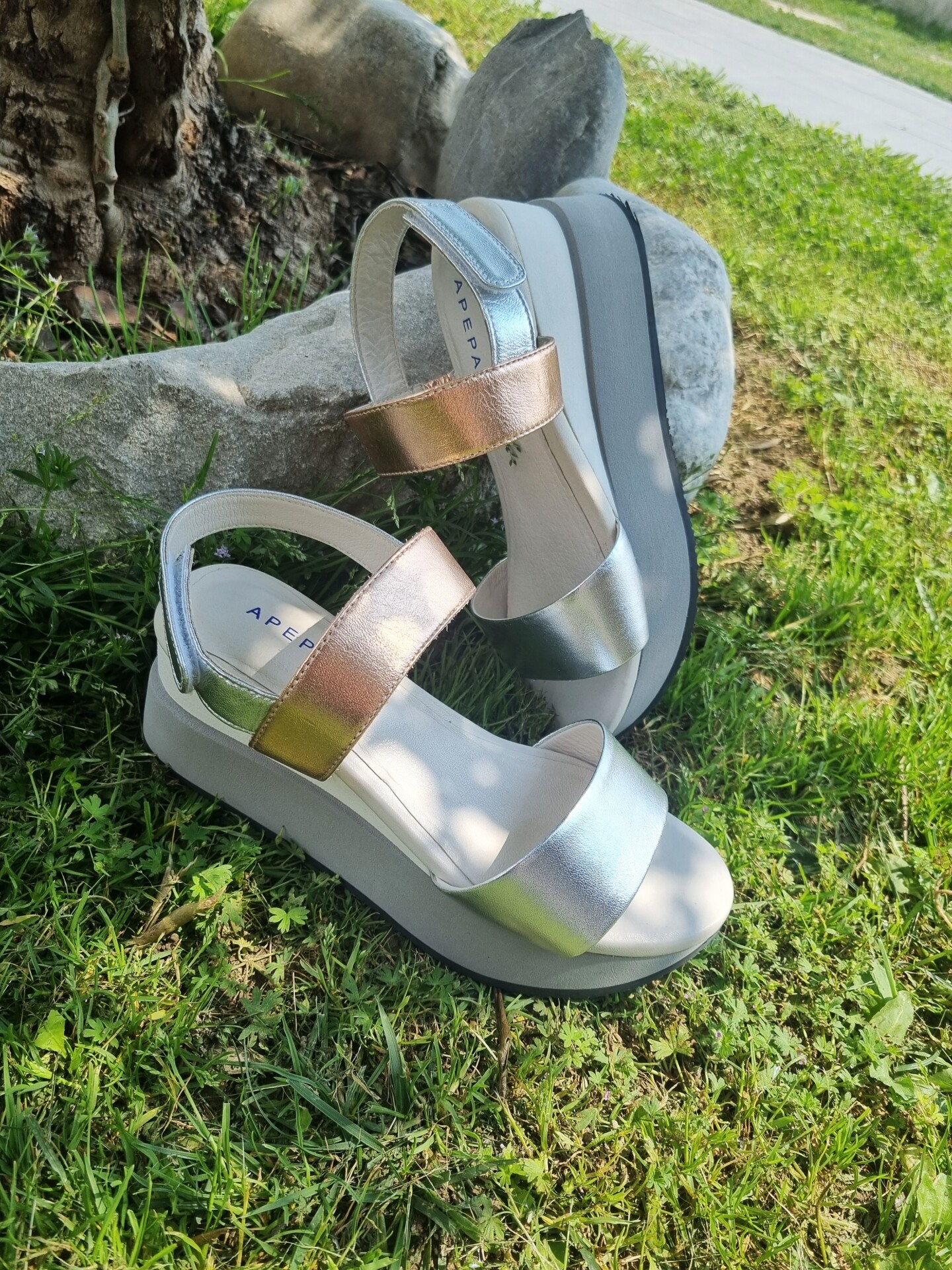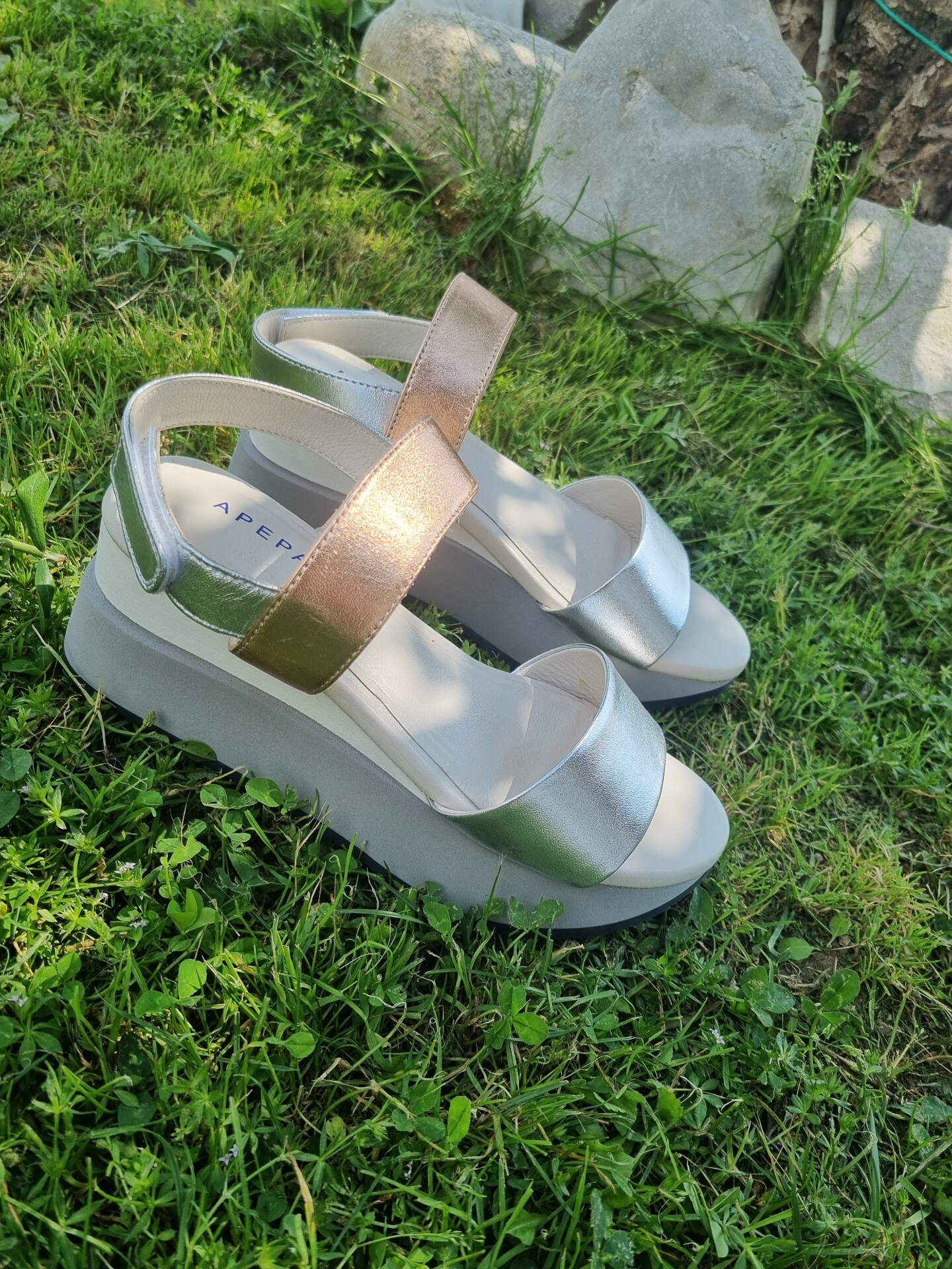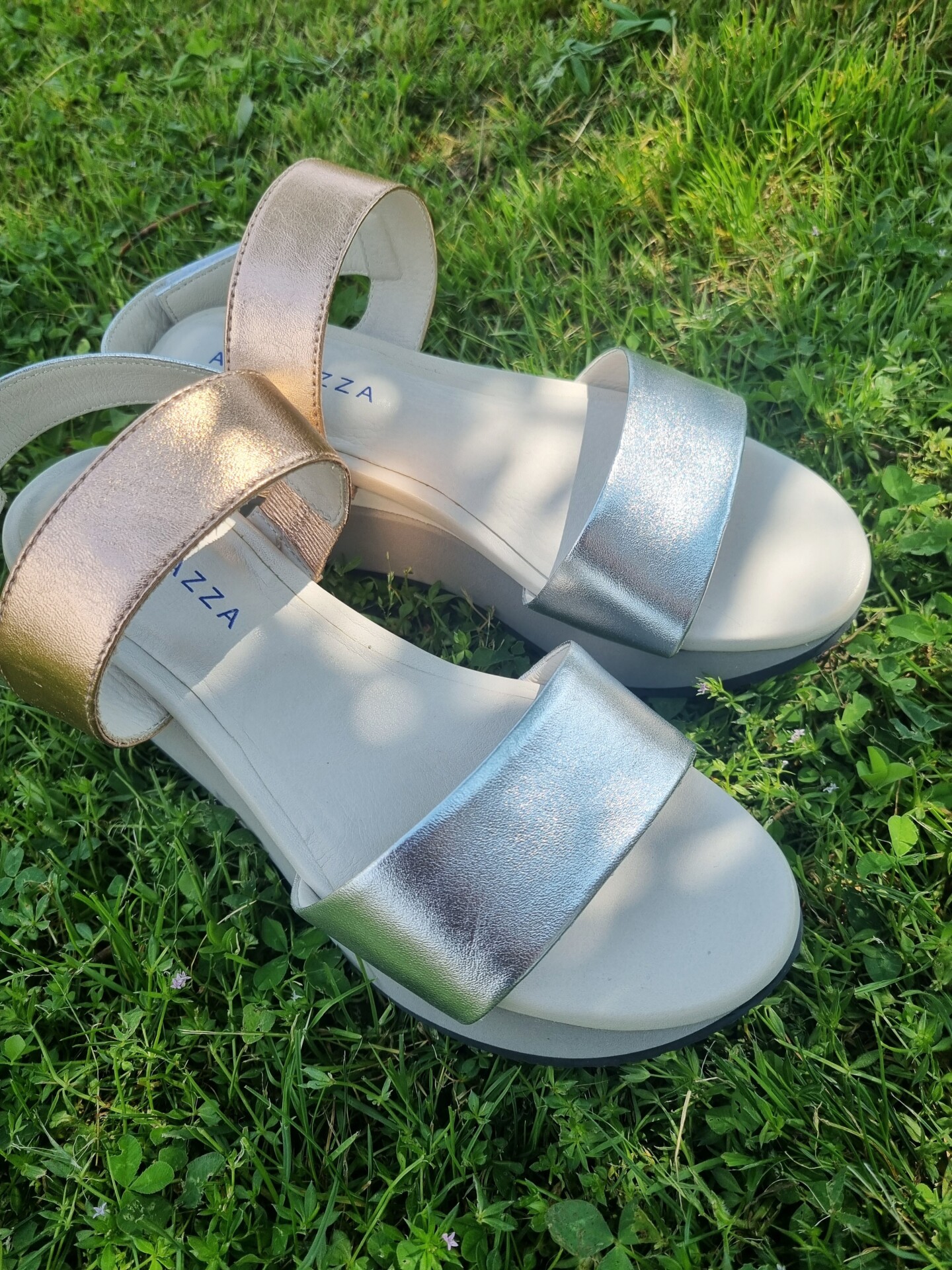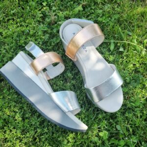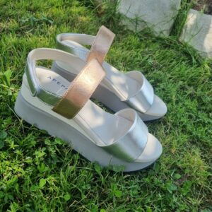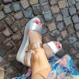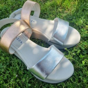 HELEN è un sandalo sportivo modello frate con fasce in pelle metalizzata. La zeppa molto confortevole alta 50 mm sul retro e 25 frontalmente, è realizzata in doppio strato per conferire una giusta inclinazione del piede. La soletta in pelle è leggermente imbottita per offrire il massimo confort.