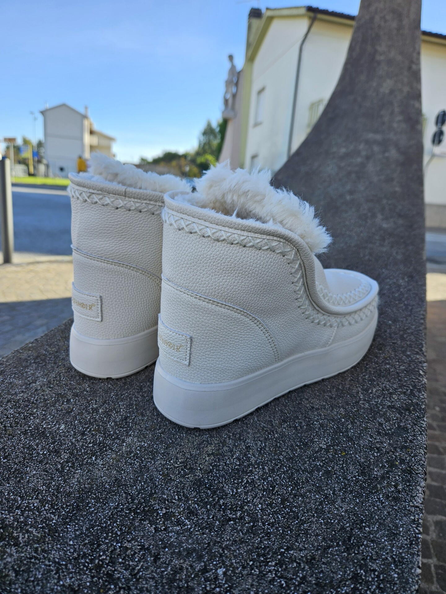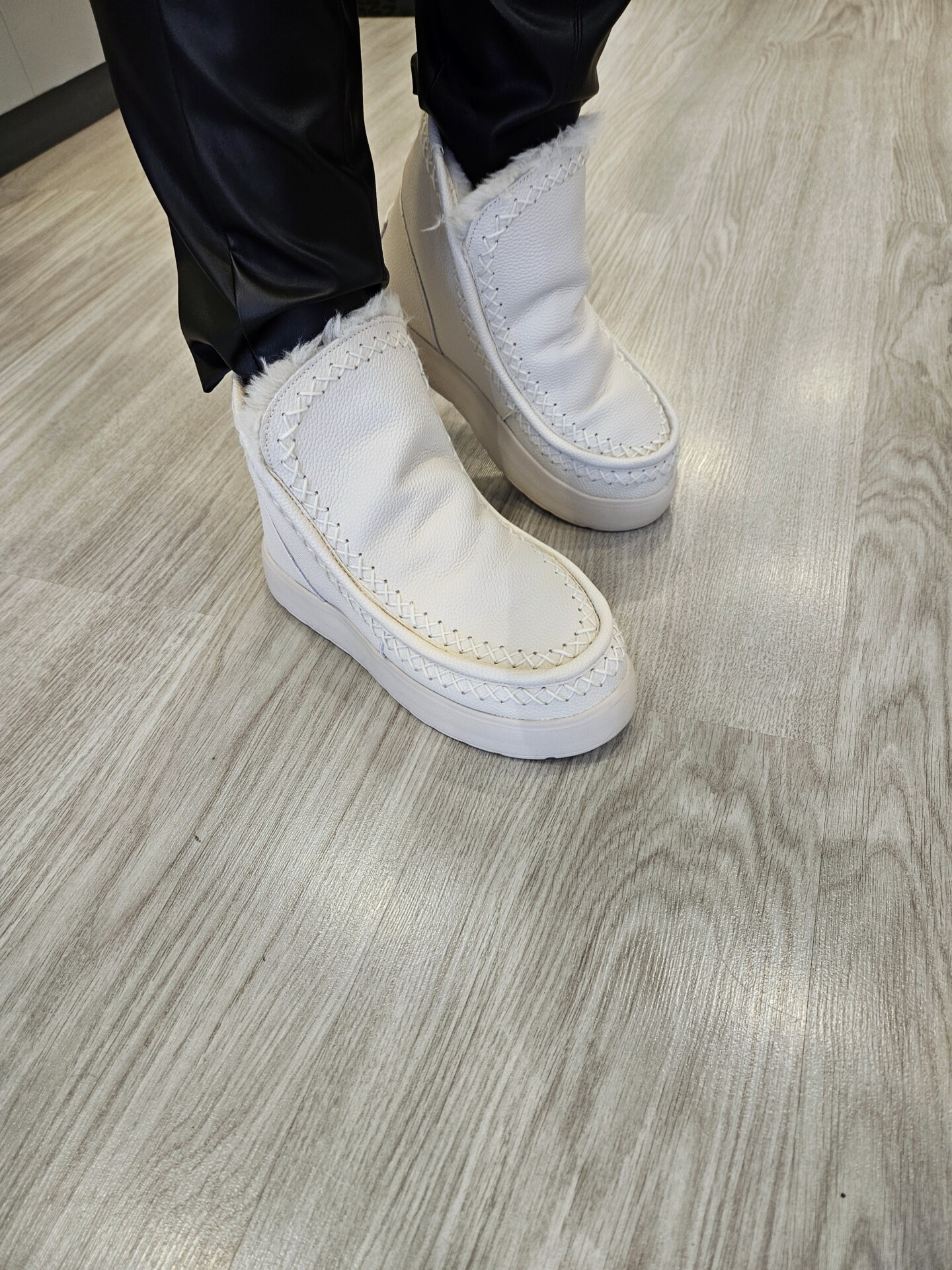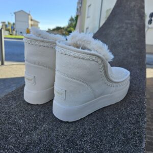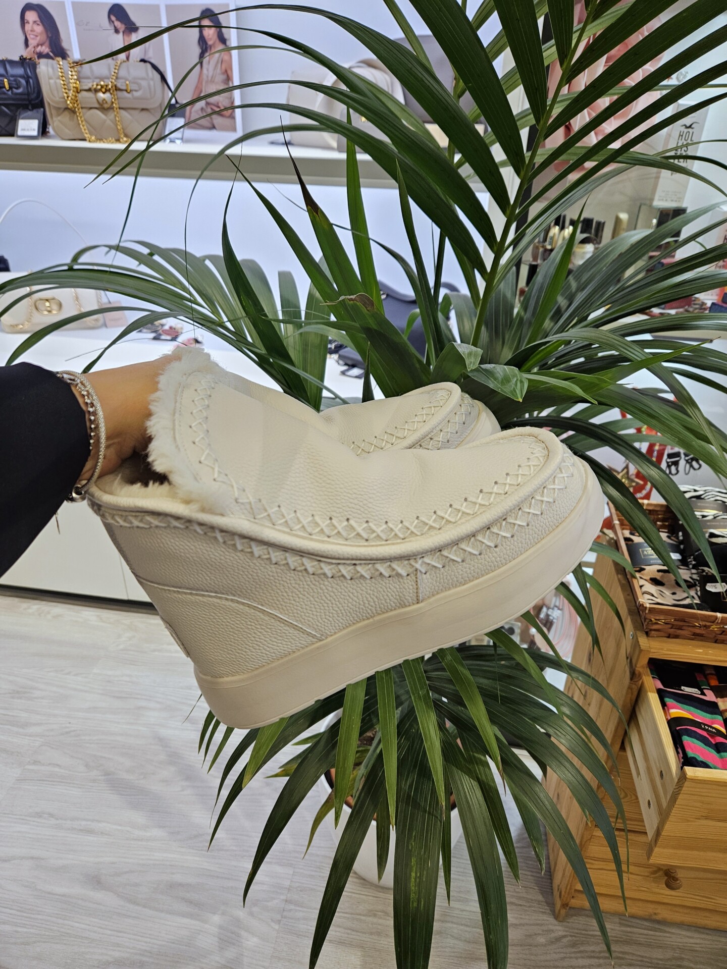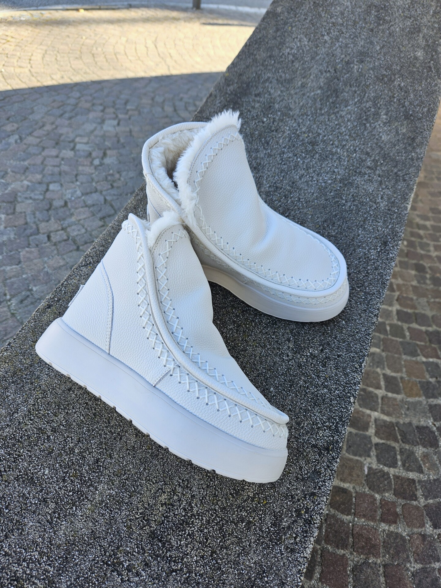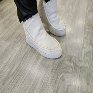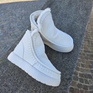 Tronchetto da donna con suola rialzata. tomaia in pelle e fodera in pelliccia sintetica.