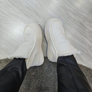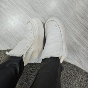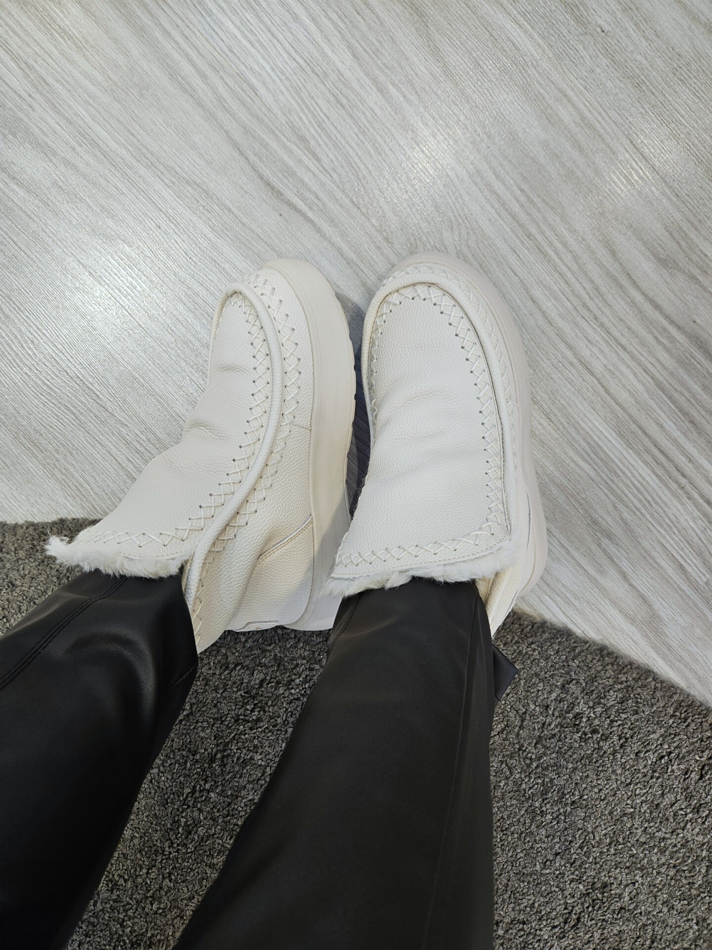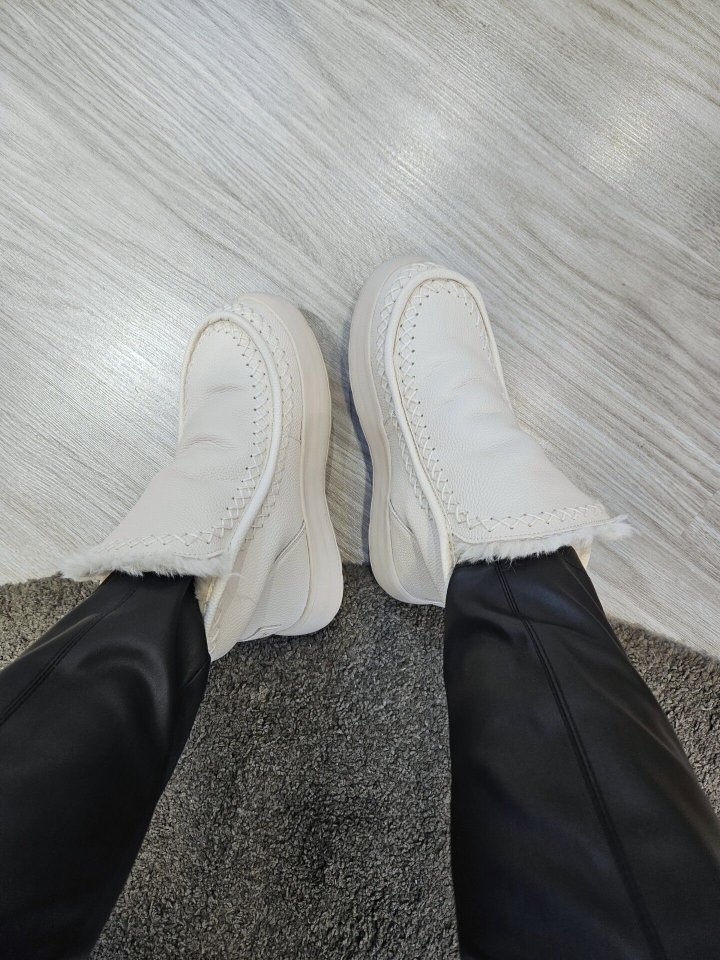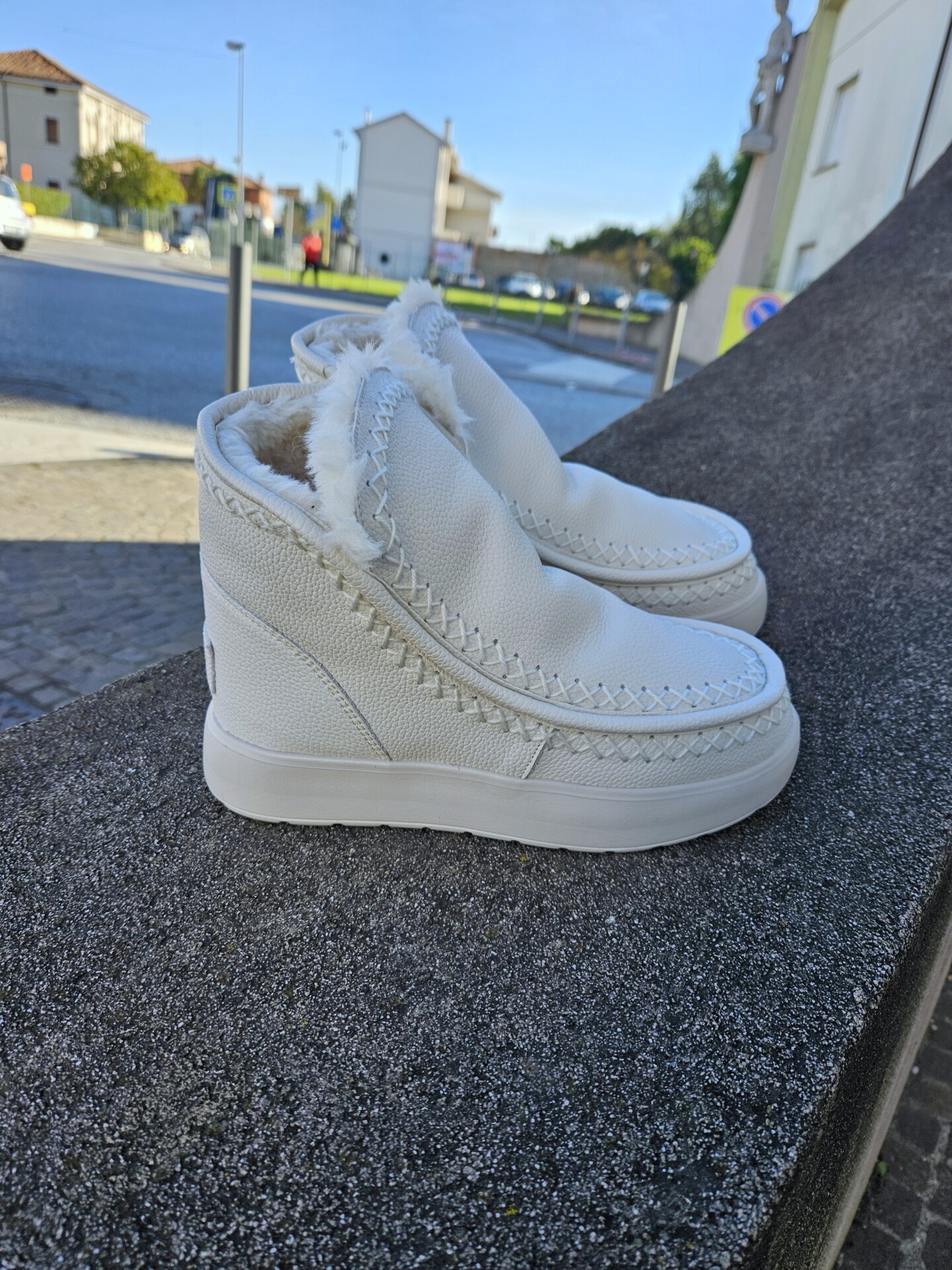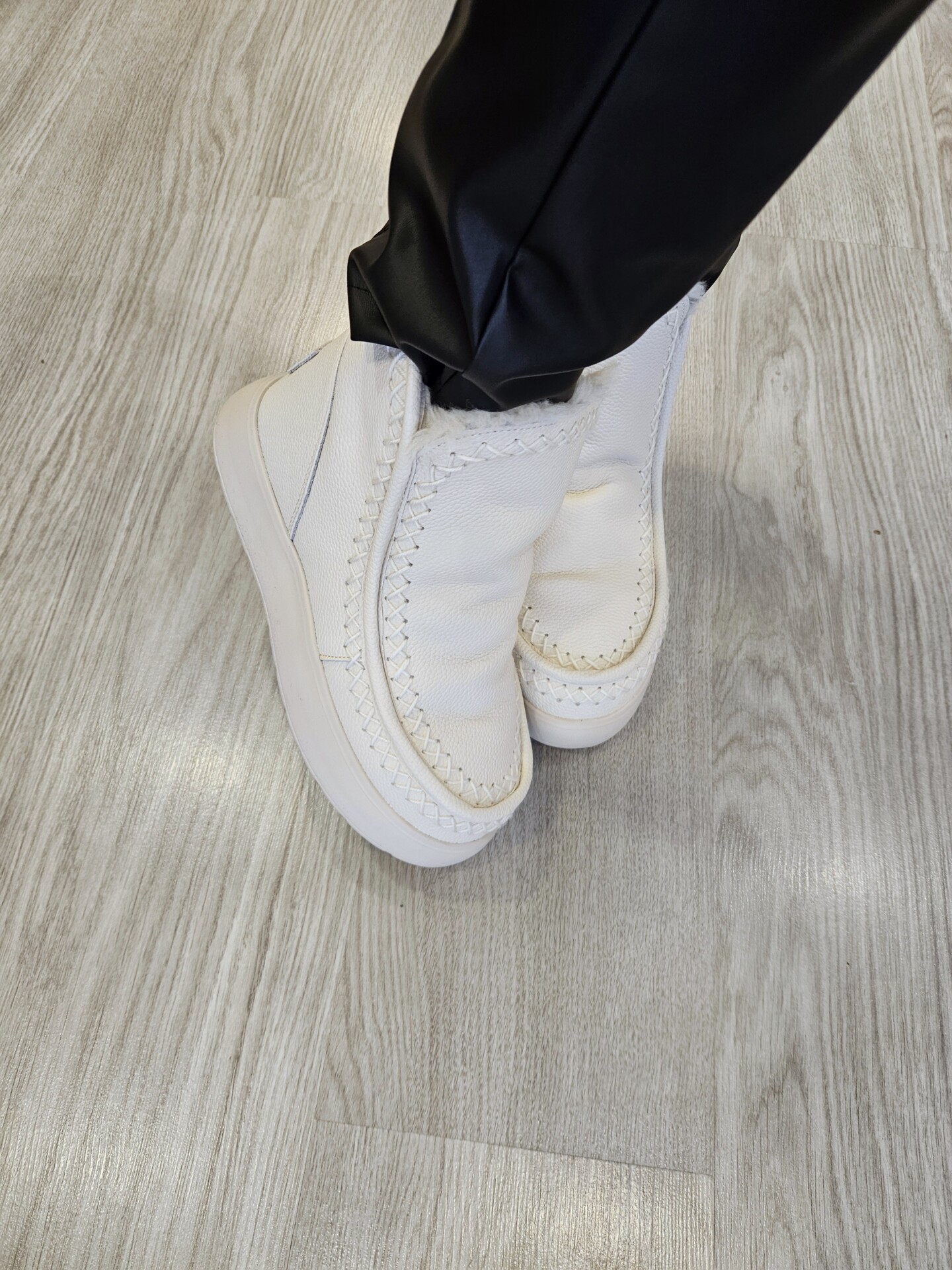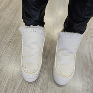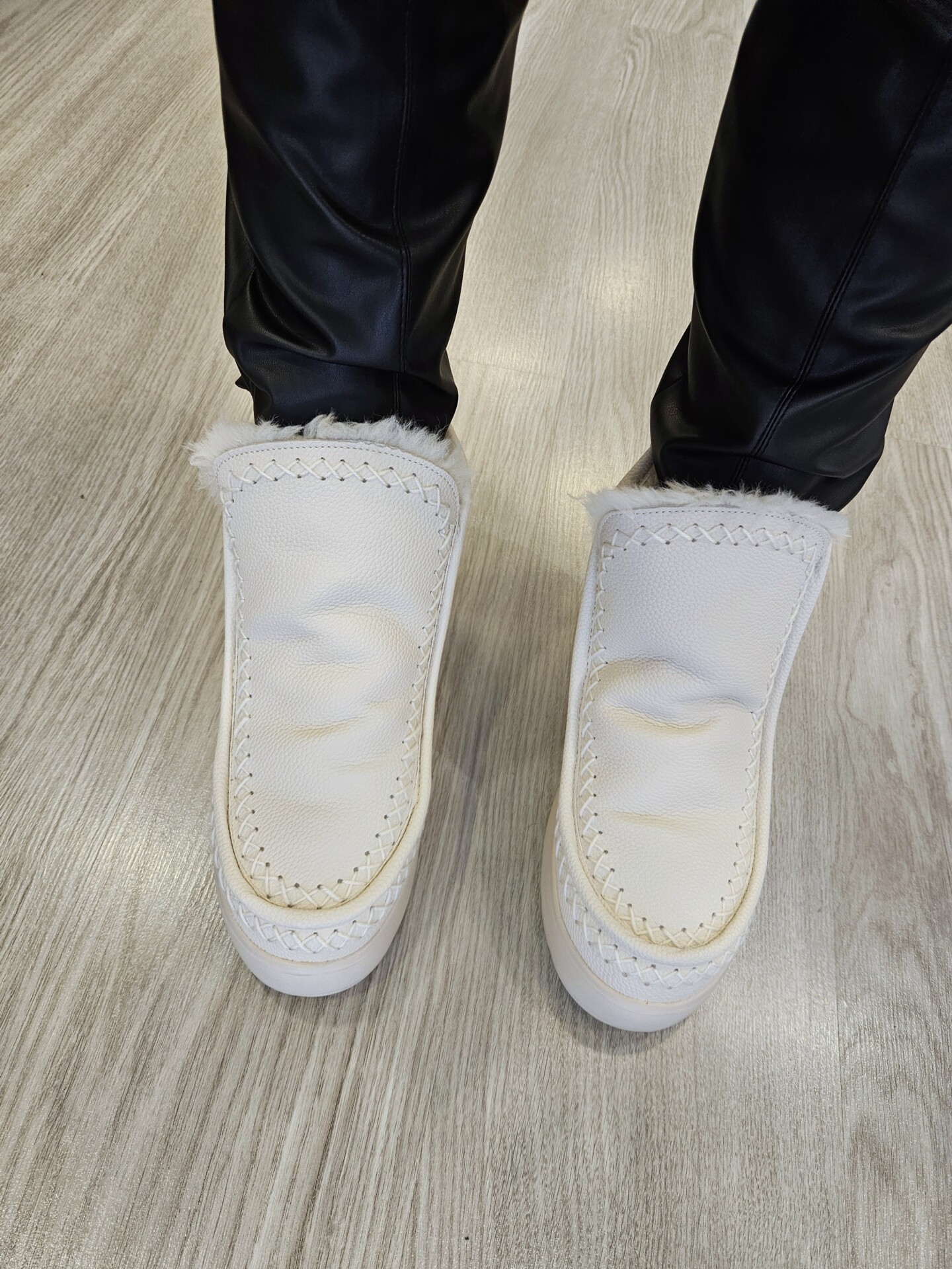 Tronchetto da donna con suola rialzata. tomaia in pelle e fodera in pelliccia sintetica.