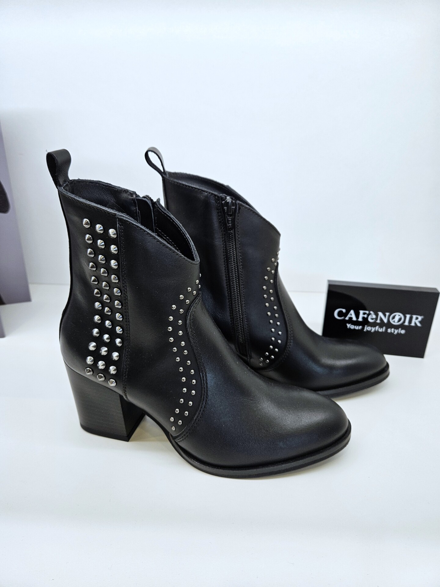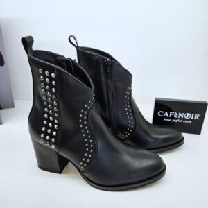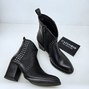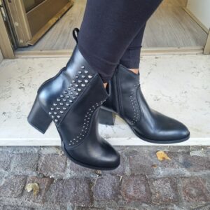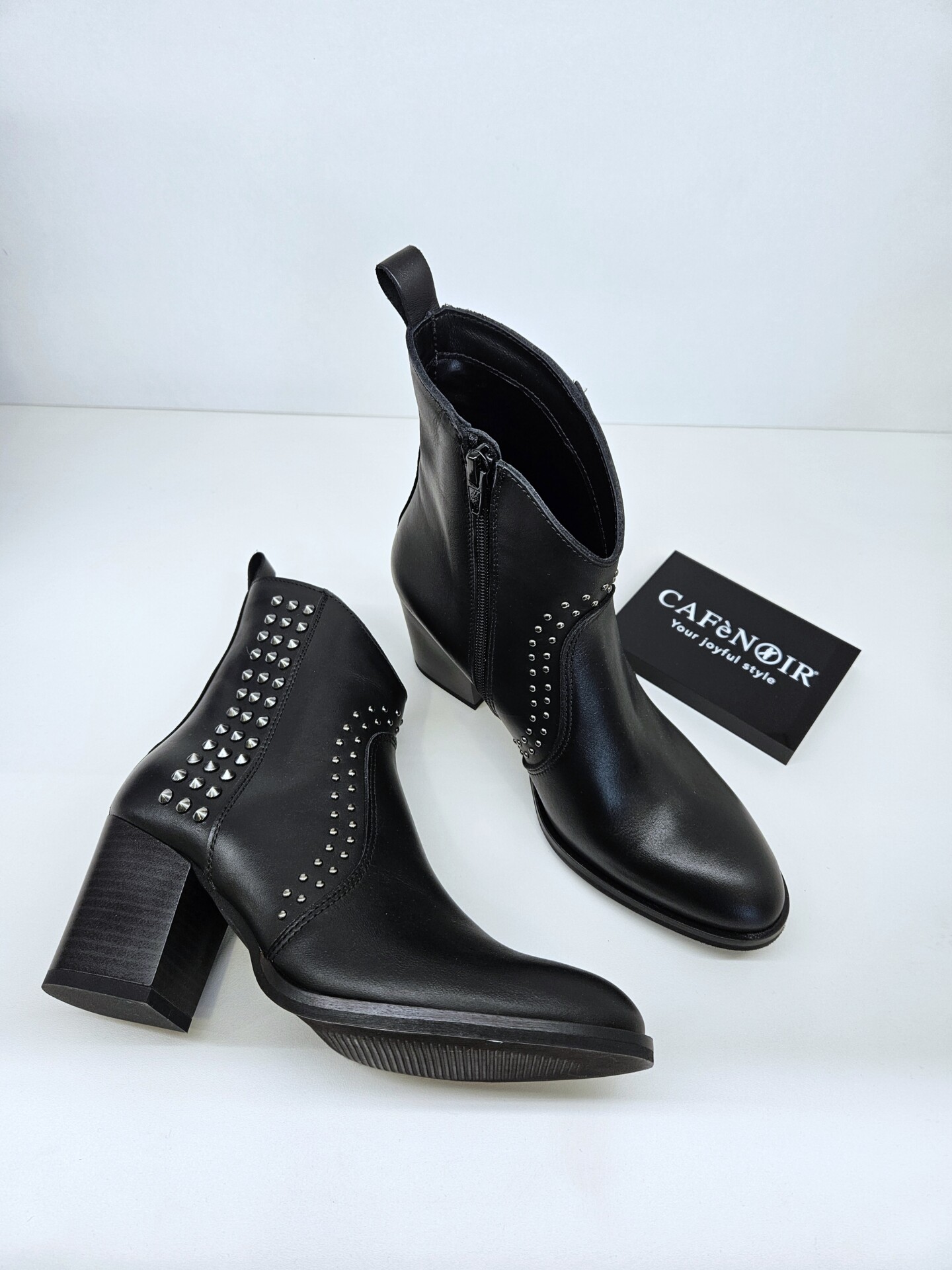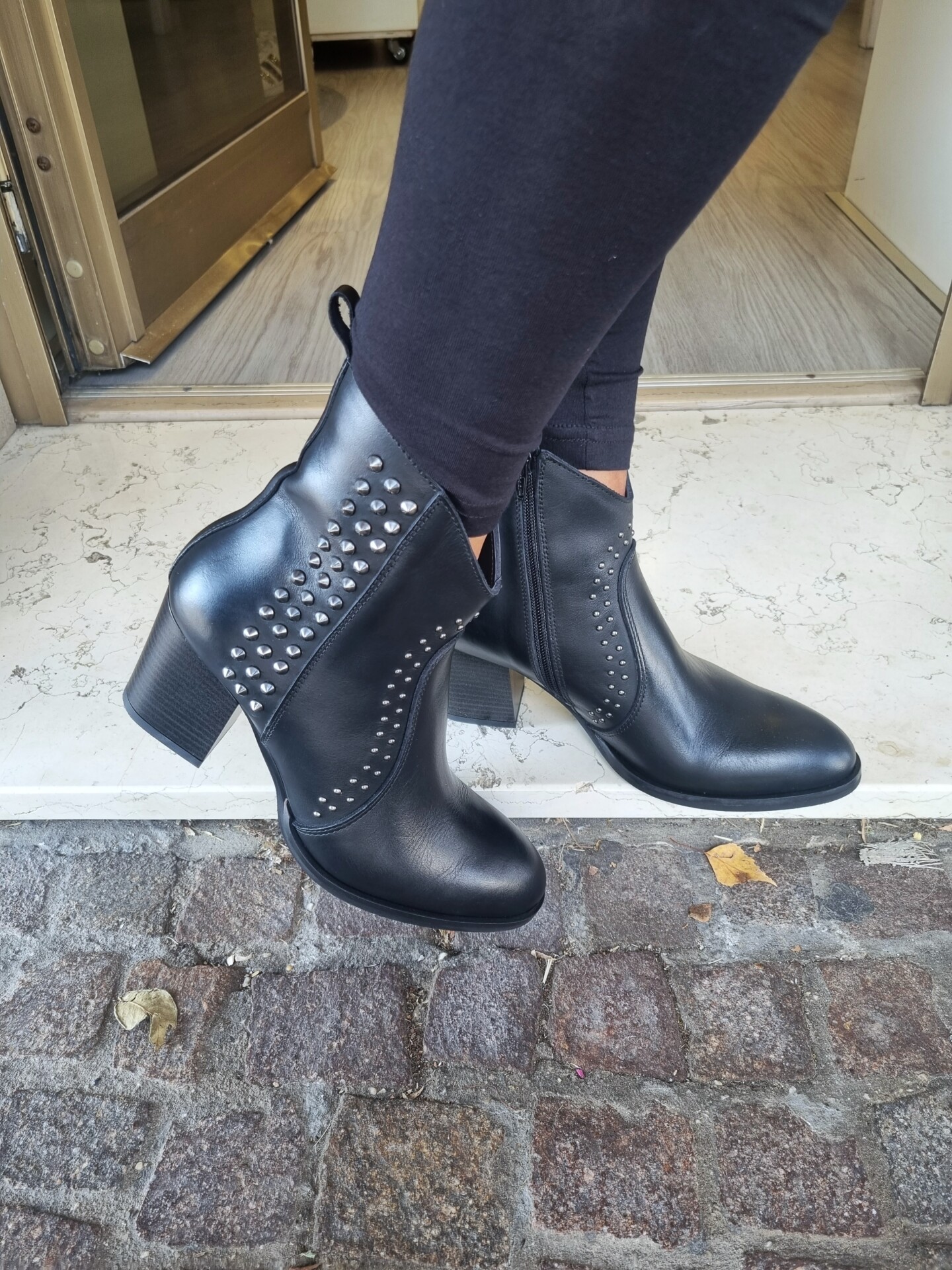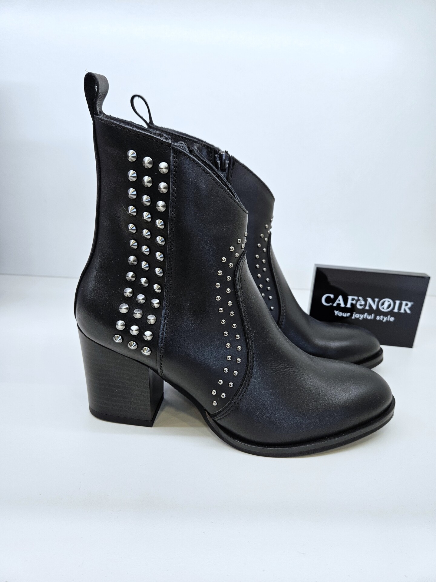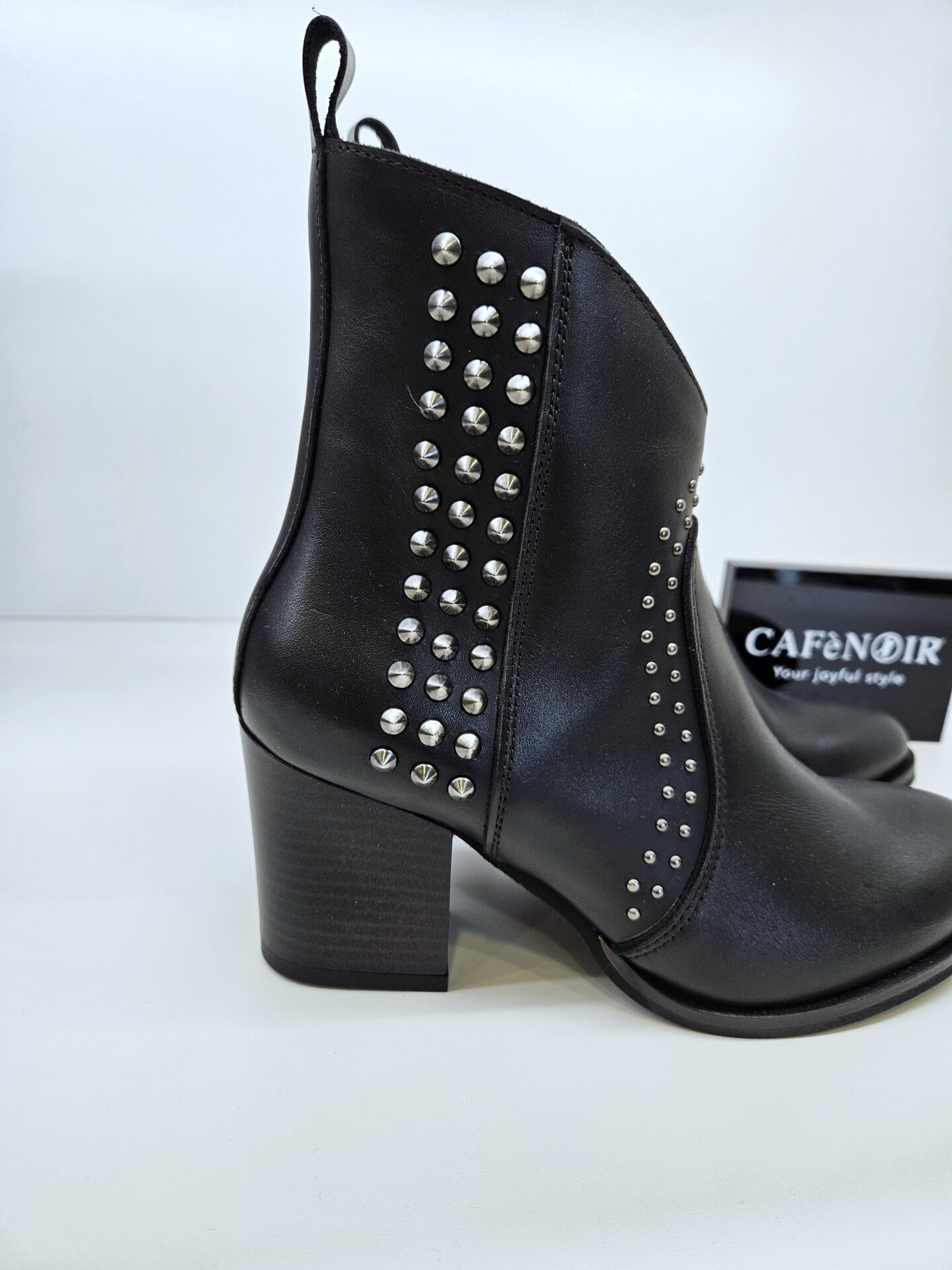 Tronchetto da donna in pelle in stile texano con fantasia di borchie a decoro. tacco 80mm. il soletto è in pelle. una calzatura dal carattere grintoso che garantirà una marcia in più ai vostri look.