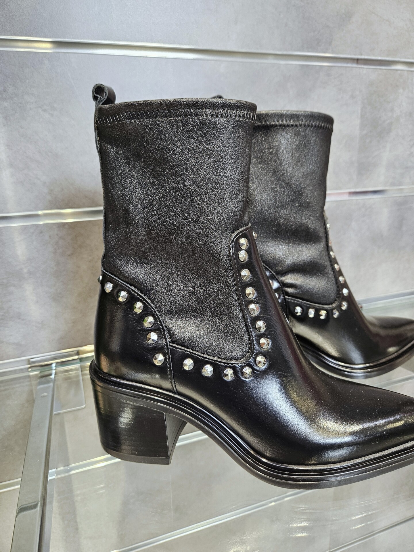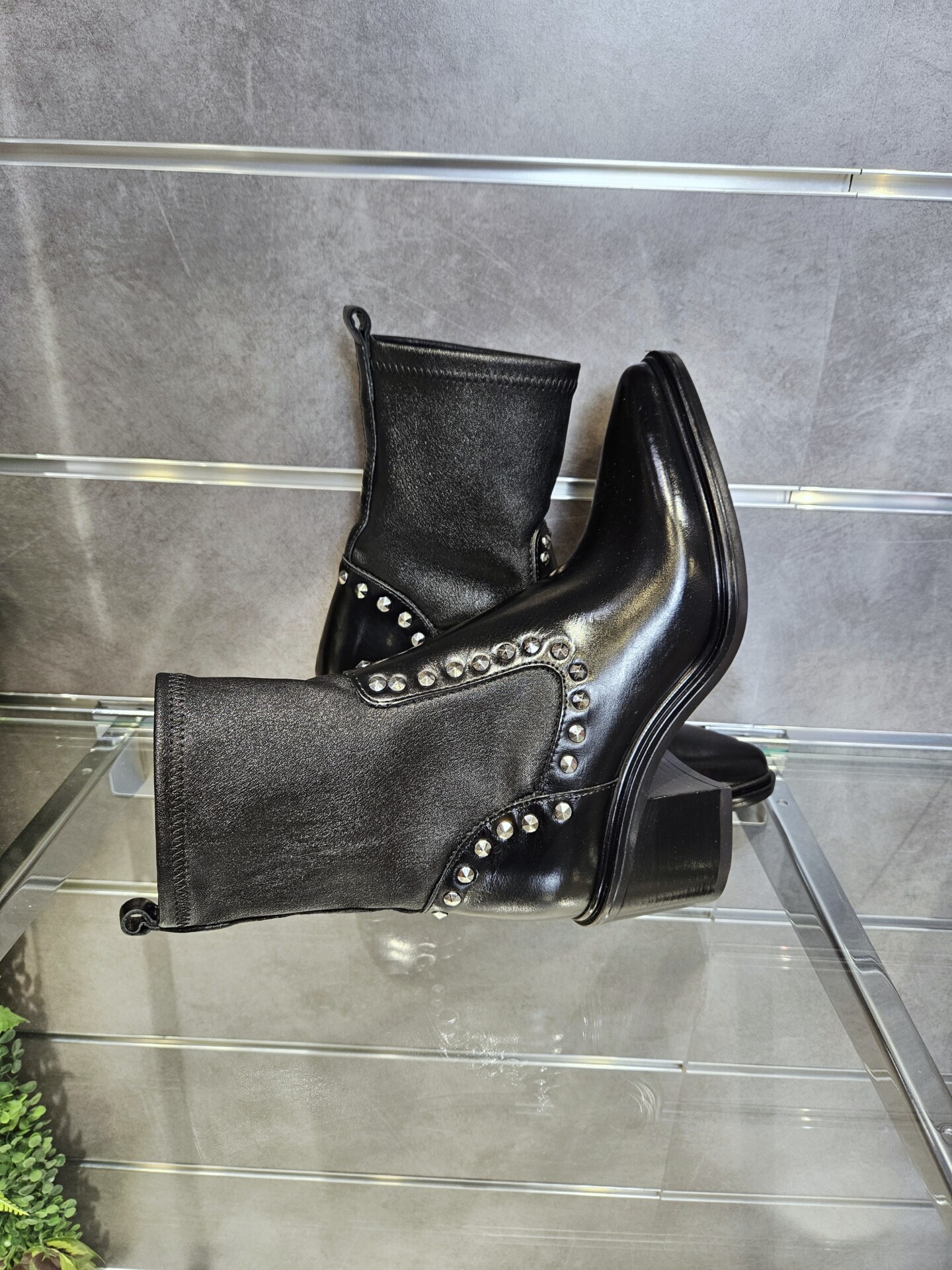 • Stivaletto in pelle con parte superiore a calzino e borchie