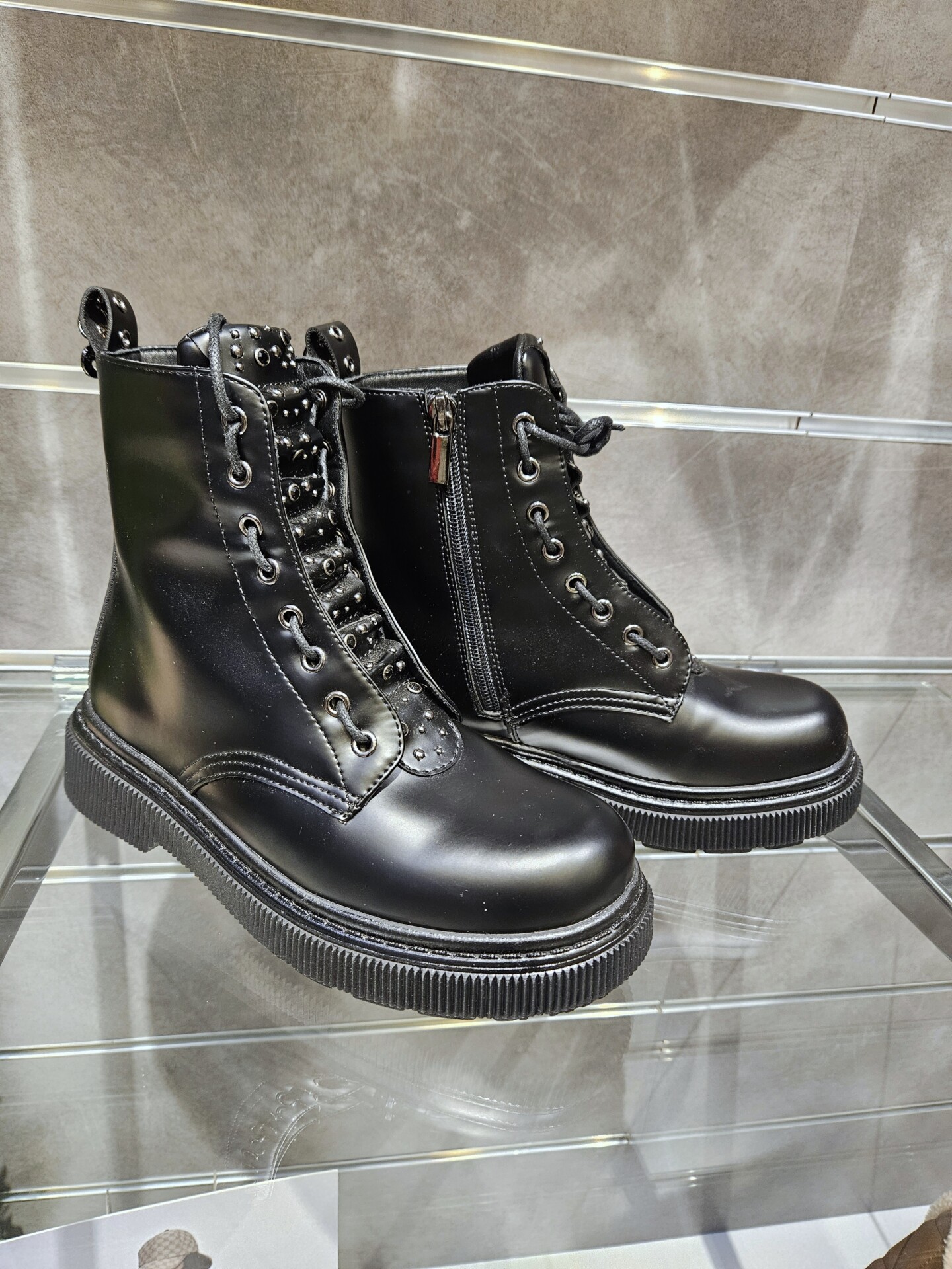 Tronchetti in similpelle abrasivata con linguetta decorata da borchie. zip interna fodera in tessuto e suola alta 4 cm. grinta e stile urbano in ogni passo.