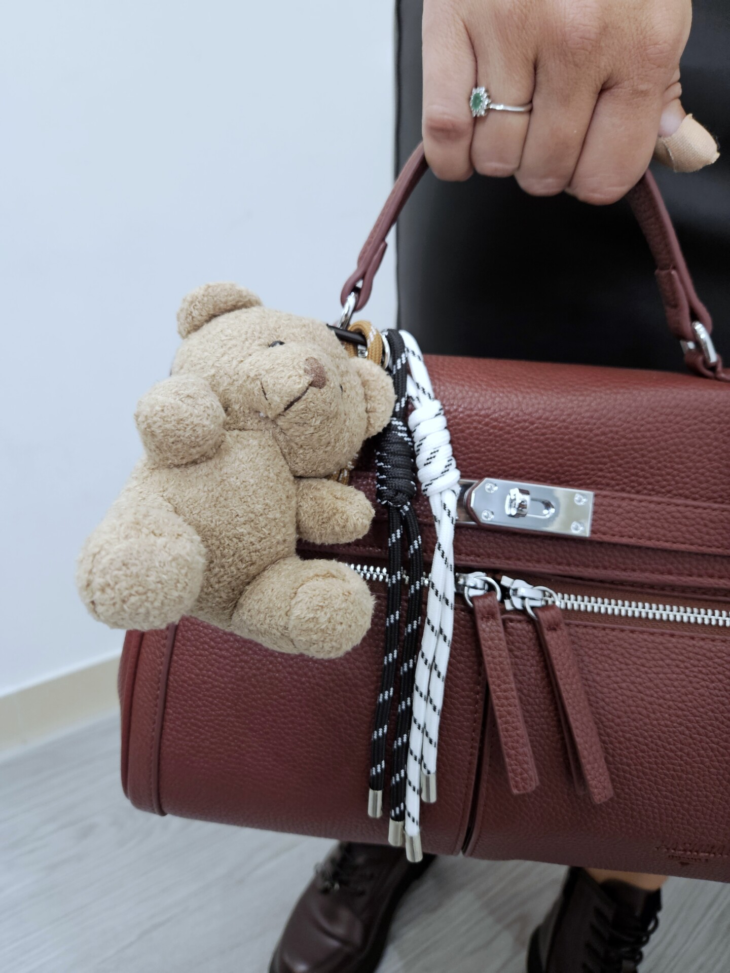 Borsa a mano con tracolla rimovibile e dettaglio charm/portachiavi con orsetto in peluche